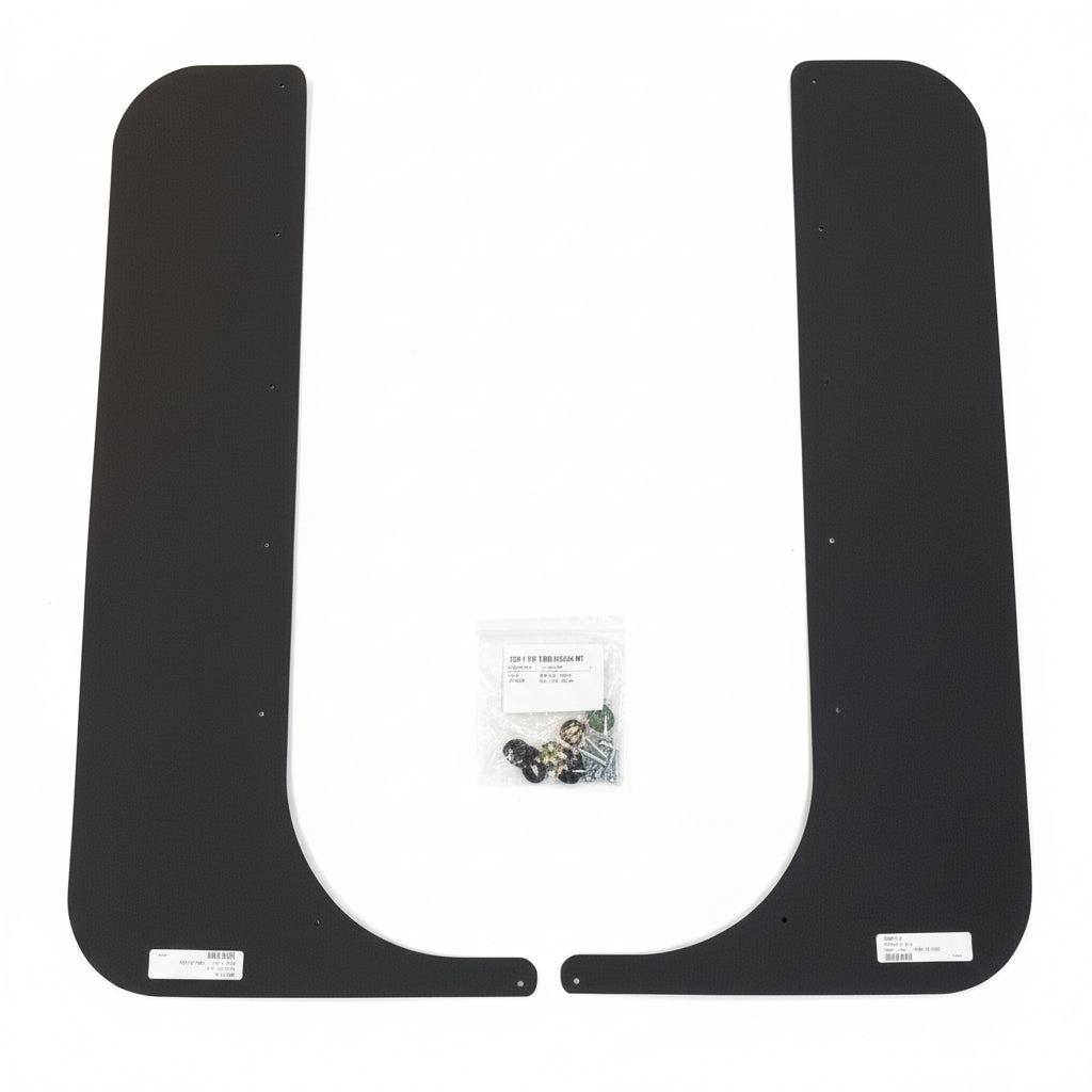 Accessory mud and snow flap kit. Keep mud and snow from flinging up from the tracks onto the back or your head and on rear occupants. A must with 18" wide tracks installed. Hardware is hidden under the vinyl bumper that surrounds the vehicle.